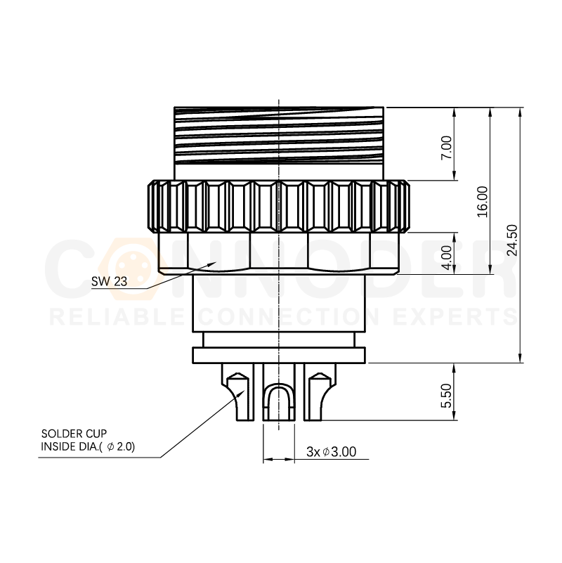 Male end of 7/8 connector, pre - molded plug, wire - soldering type, 7/8 - 16UNF
