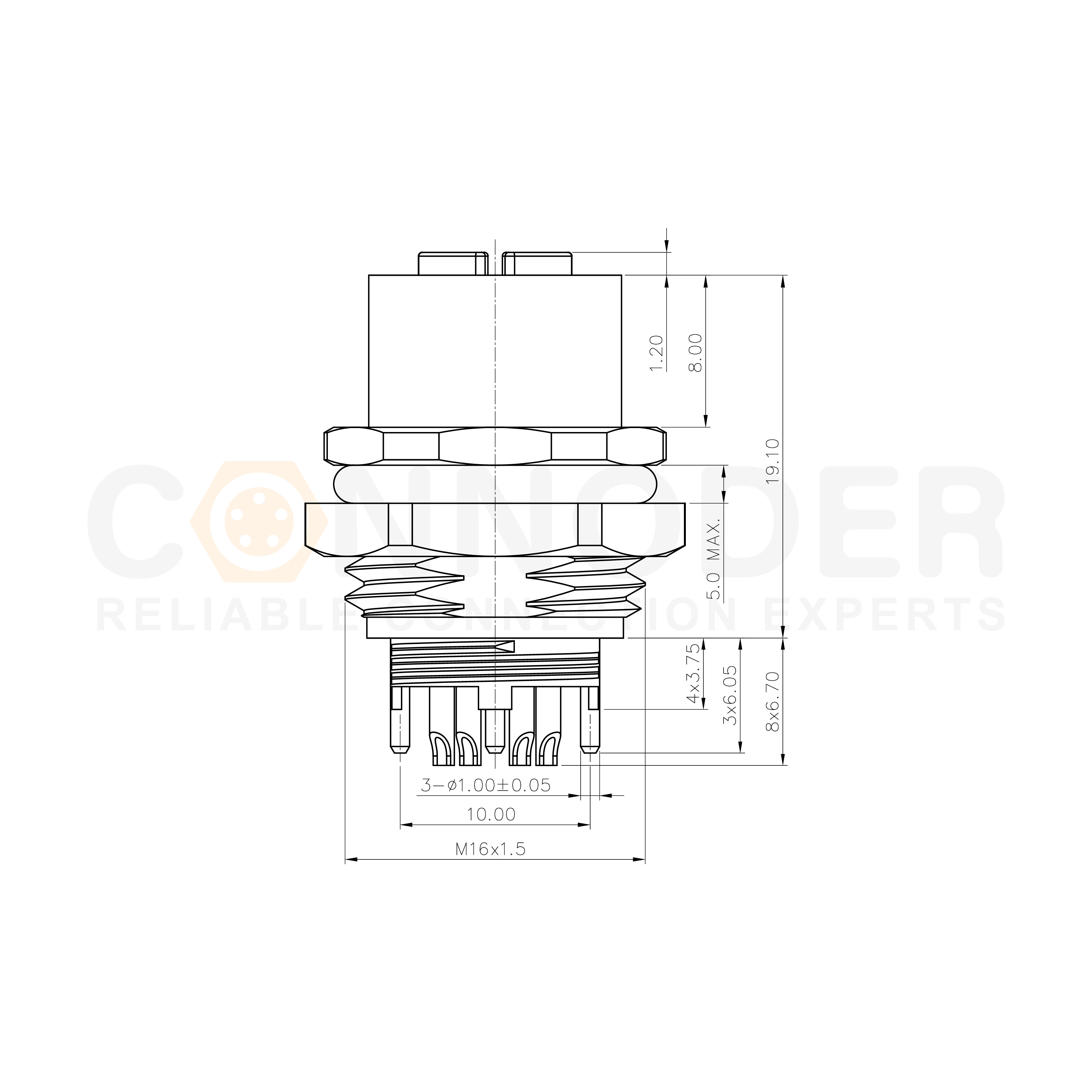 M12 X Coded Connectors Board Front Mount 8PIN Female Solder Type M16*1.5
