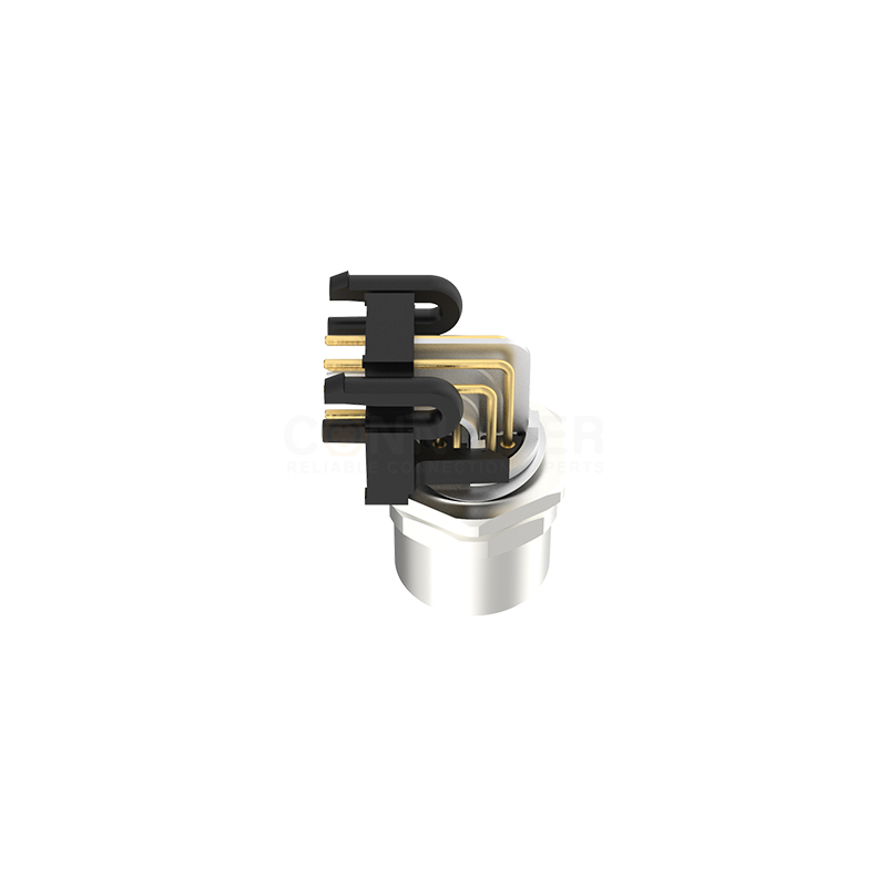 The Surface Mount Technology (SMT) socket for the M12 X coded connector is a connector specifically designed for surface mount technology that is able to be soldered directly onto a printed circuit board (PCB).